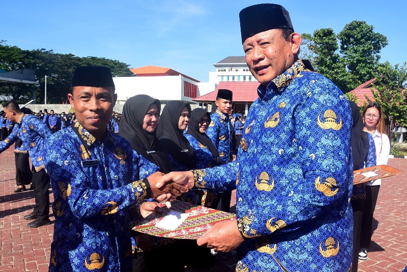 Kominfotik – Sebanyak 2.459 Pegawai Pemerintah dengan Perjanjian Kerja (PPPK) Paruh Waktu di lingkungan Pemerintah Provinsi Gorontalo dilantik oleh Gubernur Gusnar Ismail. Pelantikan yang berlangsung di halaman Museum Purbakala, Jumat (17/10/2025), dirangkaikan dengan apel Korpri, penyerahan Satyalancana Karya Satya 10, 20, dan 30 tahun, serta pengambilan sumpah dan pengangkatan CPNS menjadi PNS.