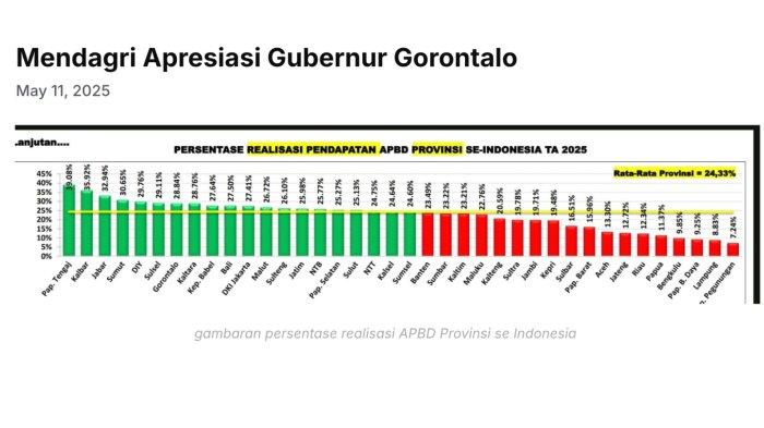Provinsi Gorontalo masuk 10 pemerintah daerah dengan realisasi pendapatan tertinggi di indonesia berada pada angka 28, 92 persen.